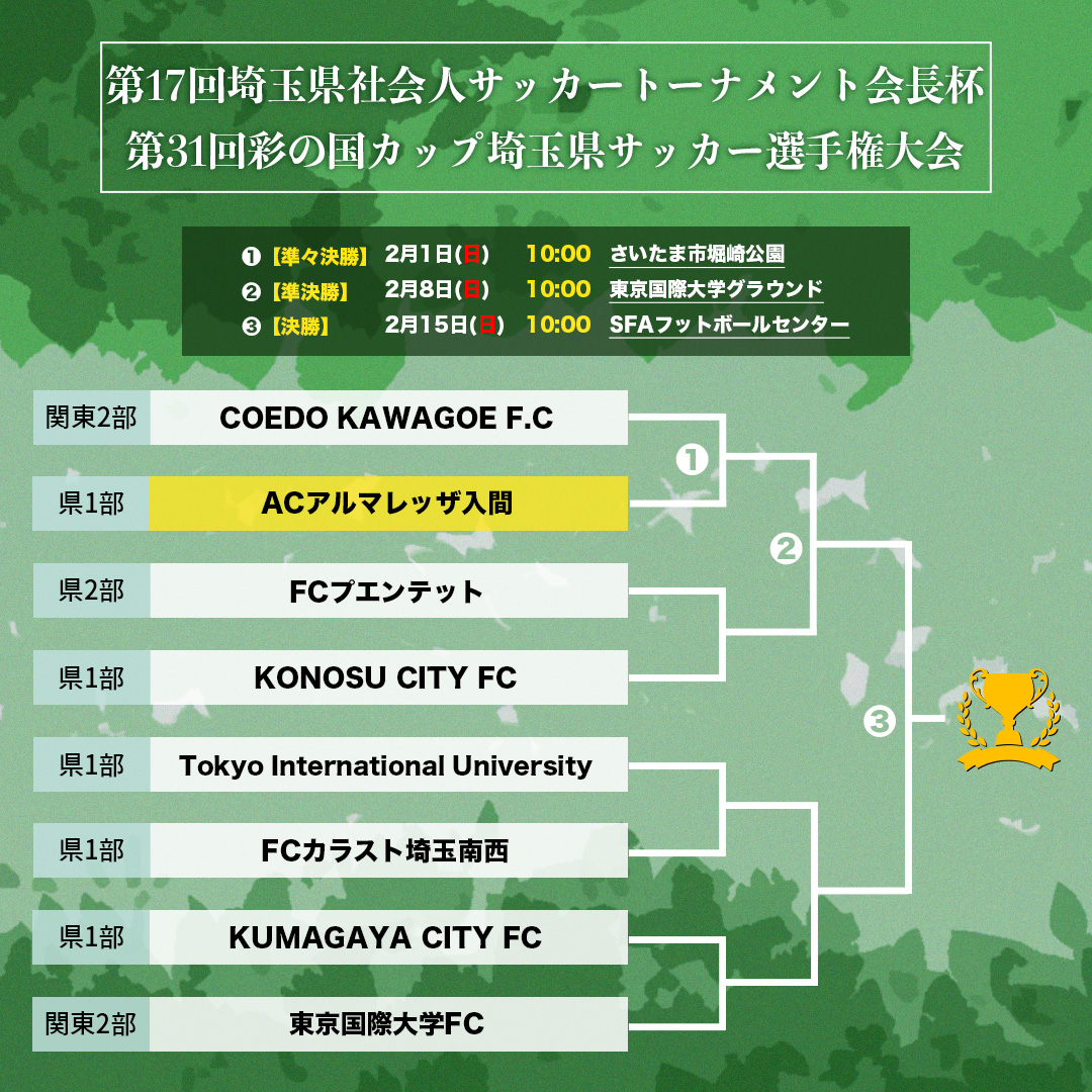 1月16日に開催を予定しておりました「アルマレッザと遊ぼう」は、中止とさせていただくことになりましたのでお知らせいたします。 会場である狭山経済高校グラウンドの改修工事にともない、1月・2月の「アルマレッザと遊ぼう」はい…