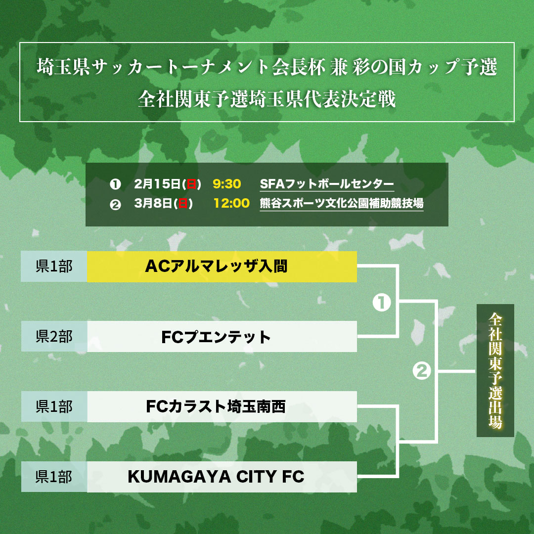 第33回全国クラブチーム選手権埼玉県大会の日程が決定しました。 昨年の県3部リーグ(東西南北4ブロック)の2〜5位、 計16チームによるトーナメント。埼玉県大会で優勝すると、全国クラブチーム選手権大会に出場することができ…