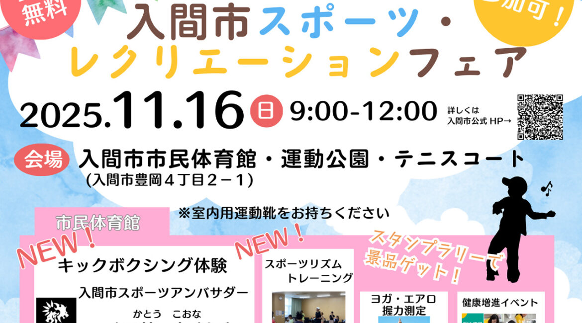 11月16日(日)に入間市市民体育館・運動公園・テニスコートで行われる『入間市スポーツ・レクリエーションフェア』に参加いたします!